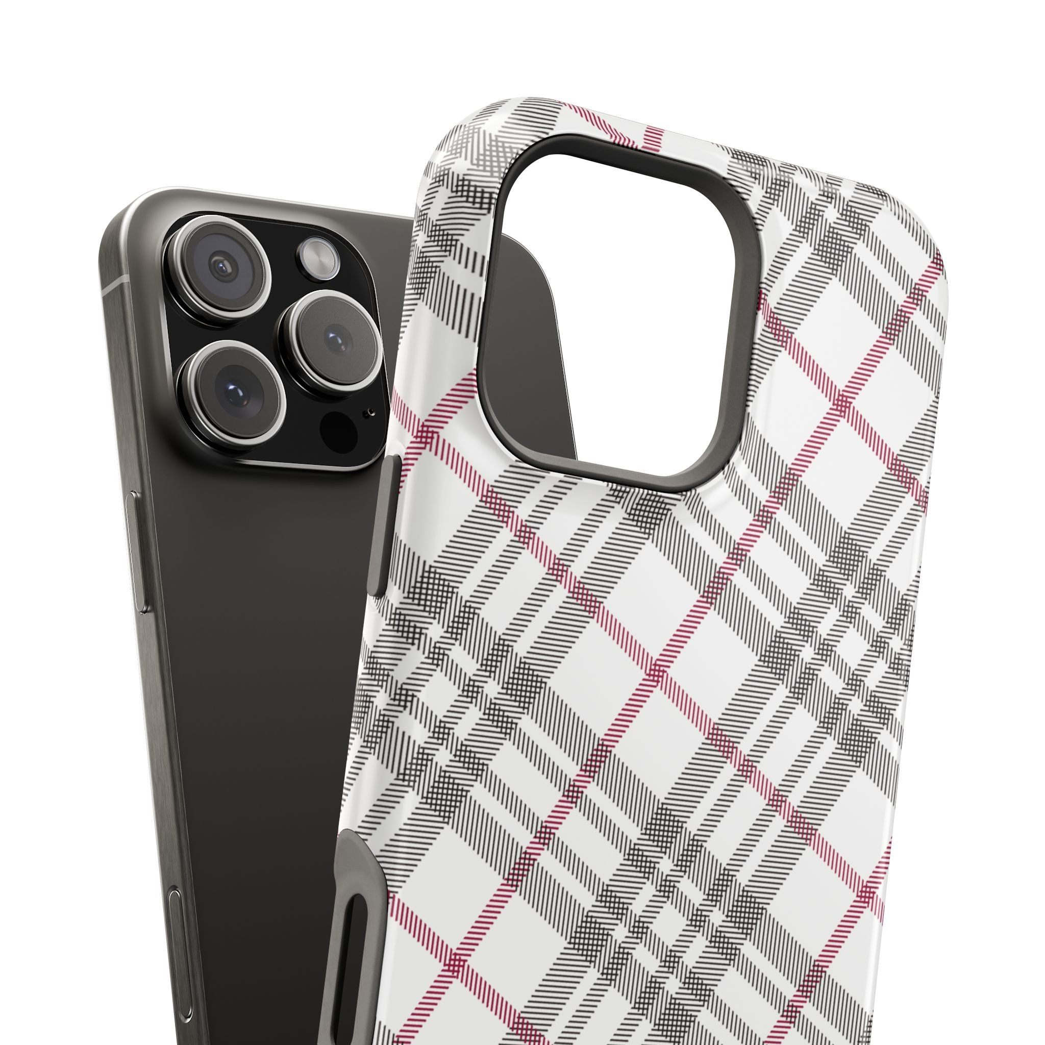 The Plaid Essence phone cover features a timeless black, white and red plaid pattern, offering a classic yet stylish look for your device. This cover not only enhances your phone’s appearance but also provides durable protection against everyday wear and tear.