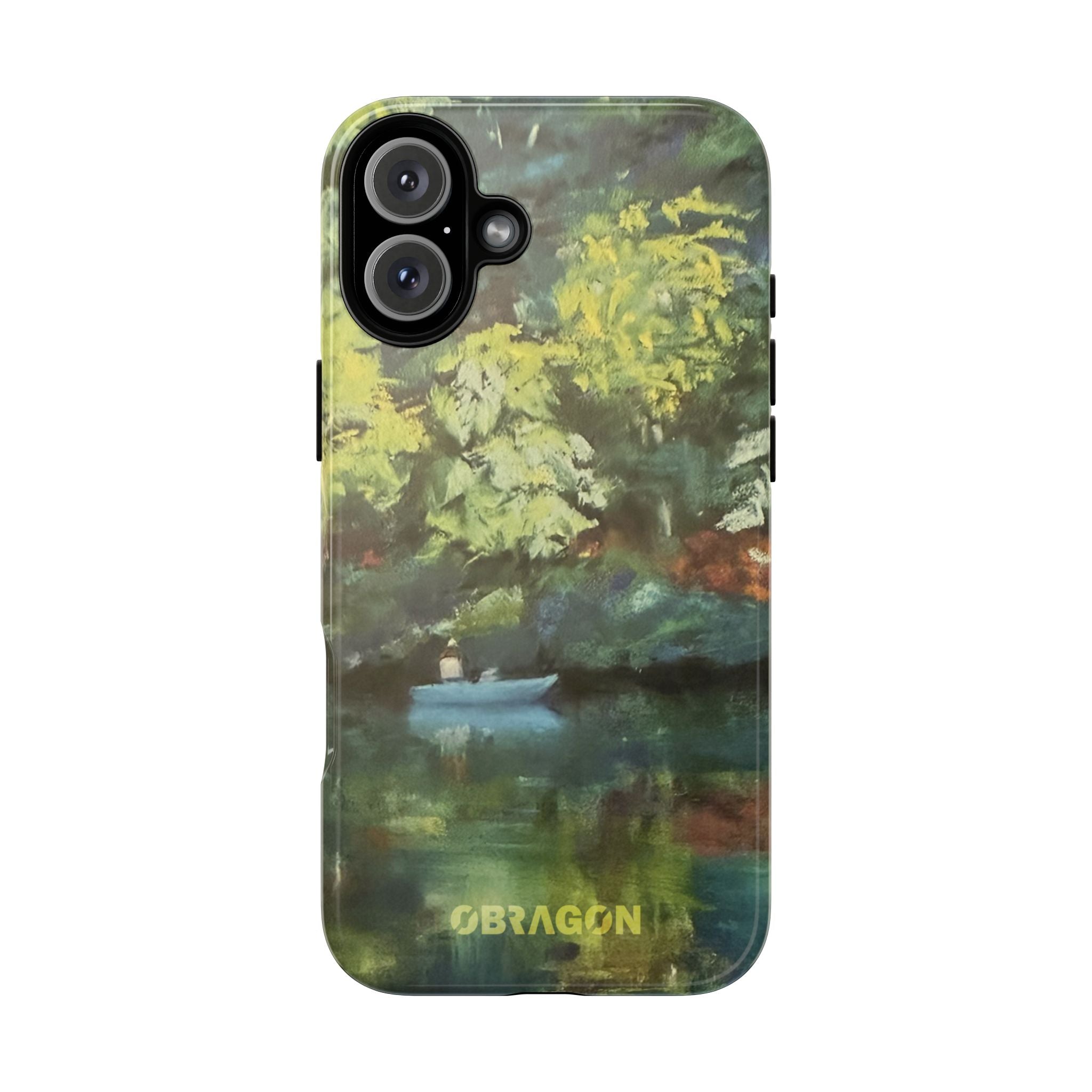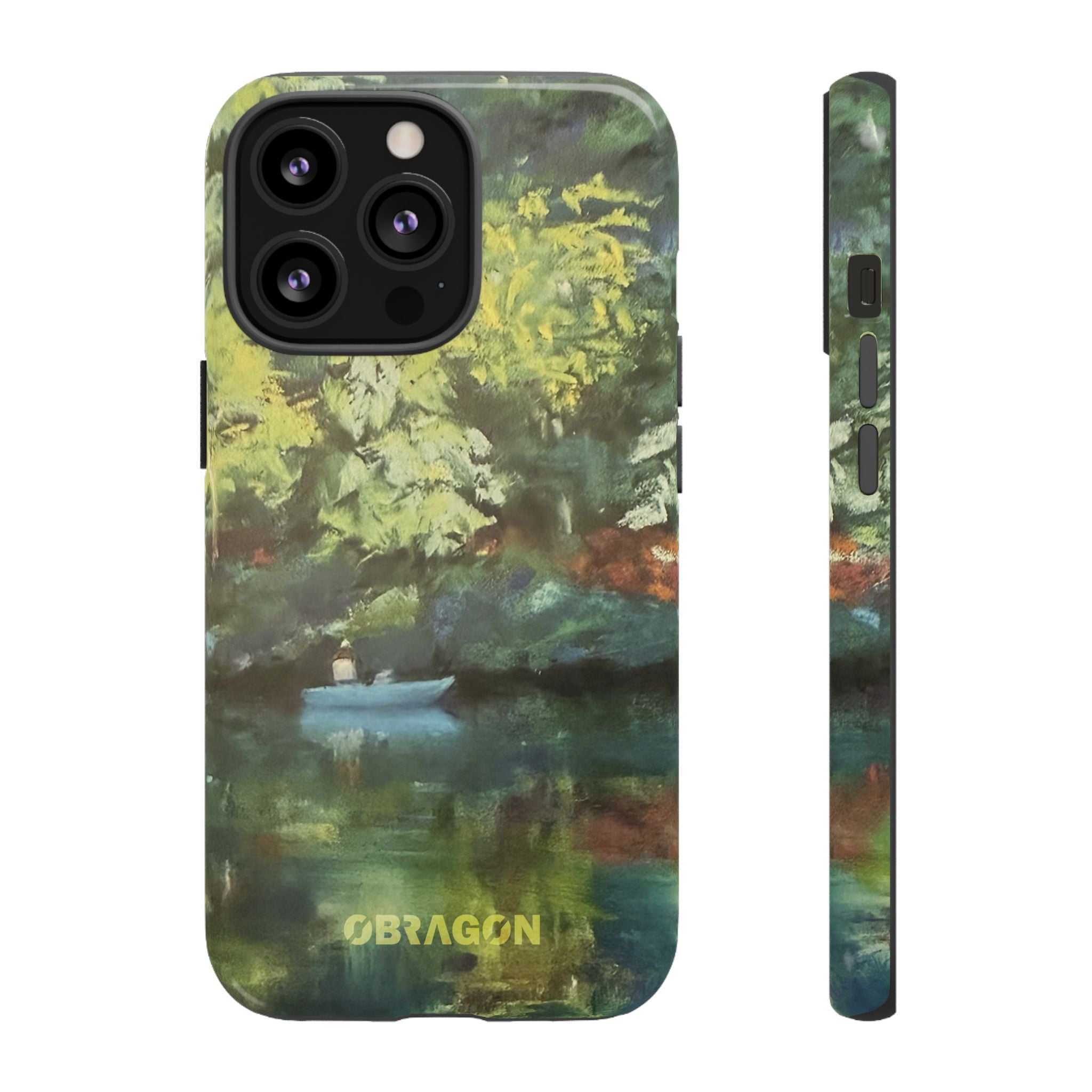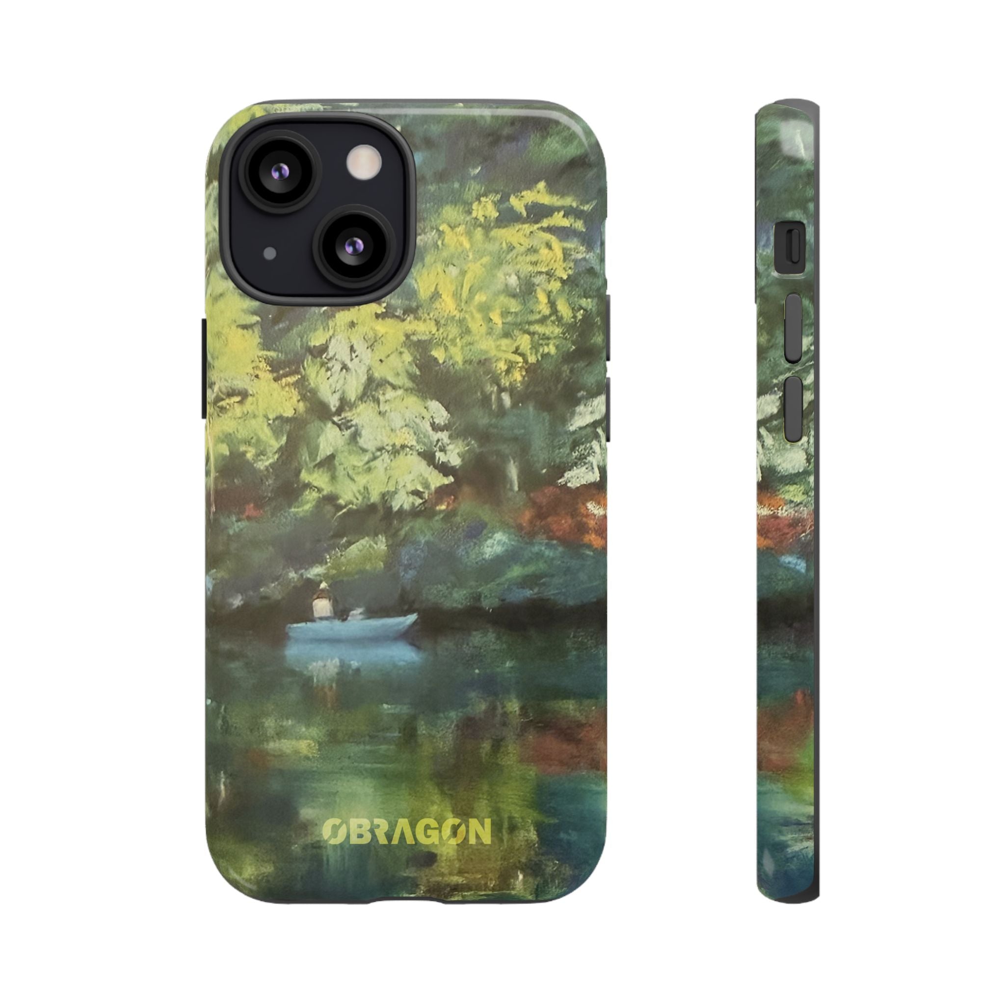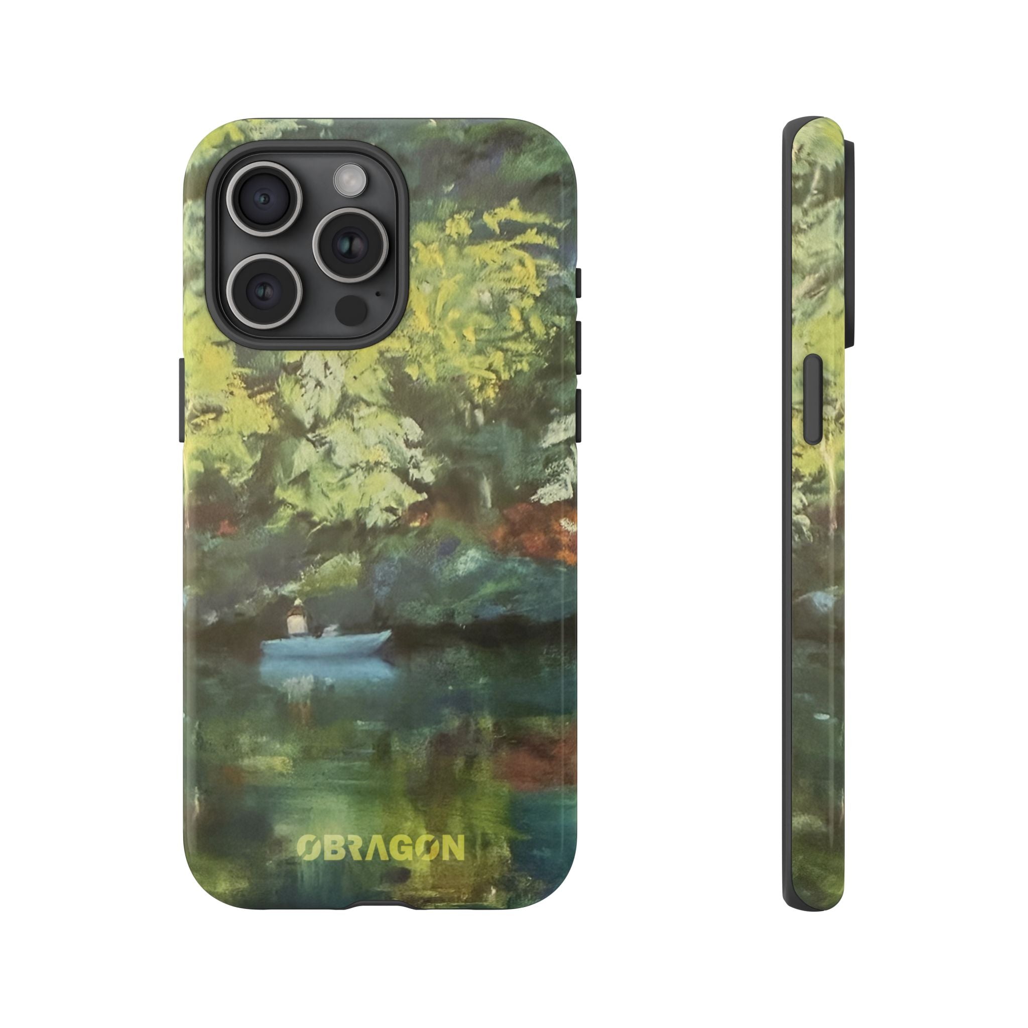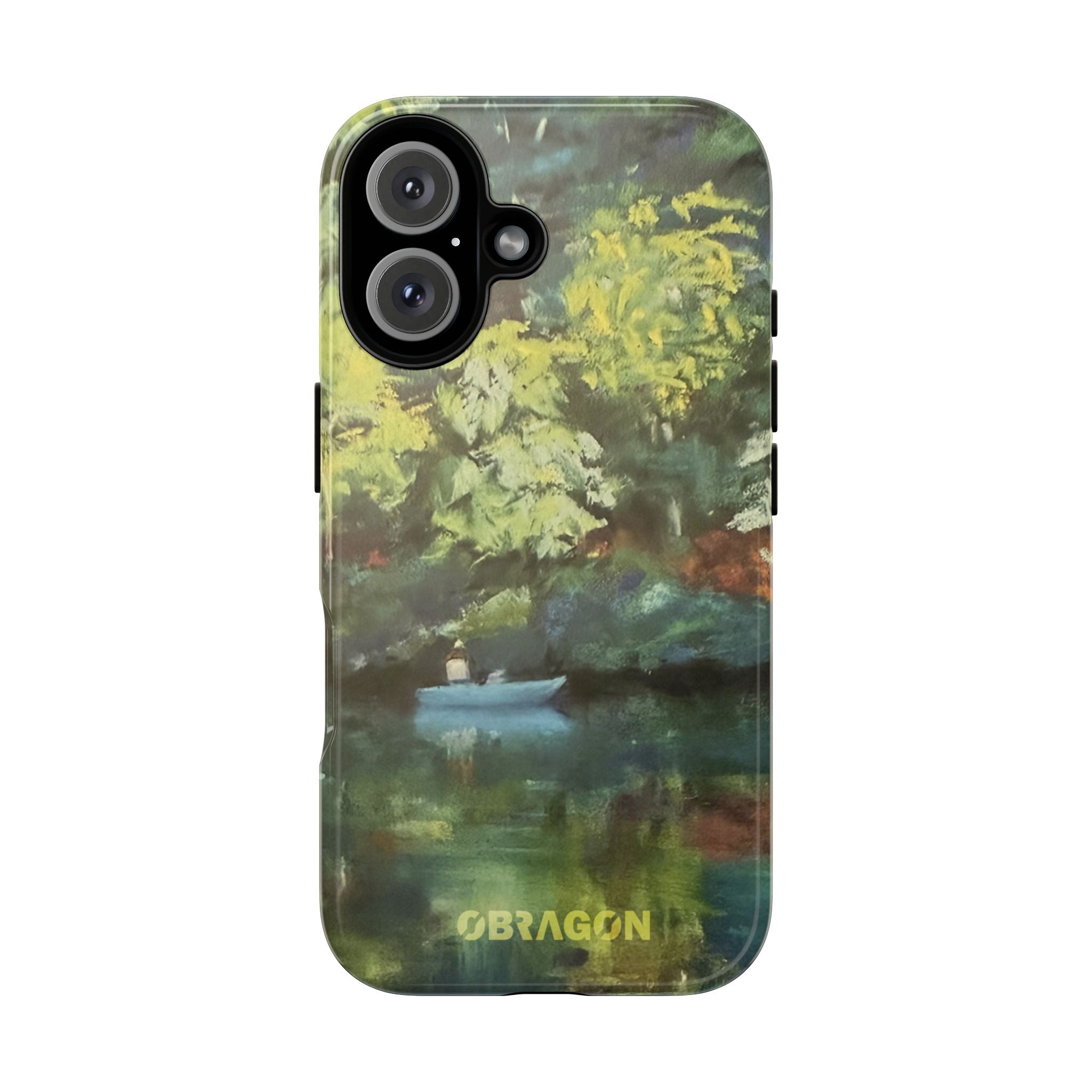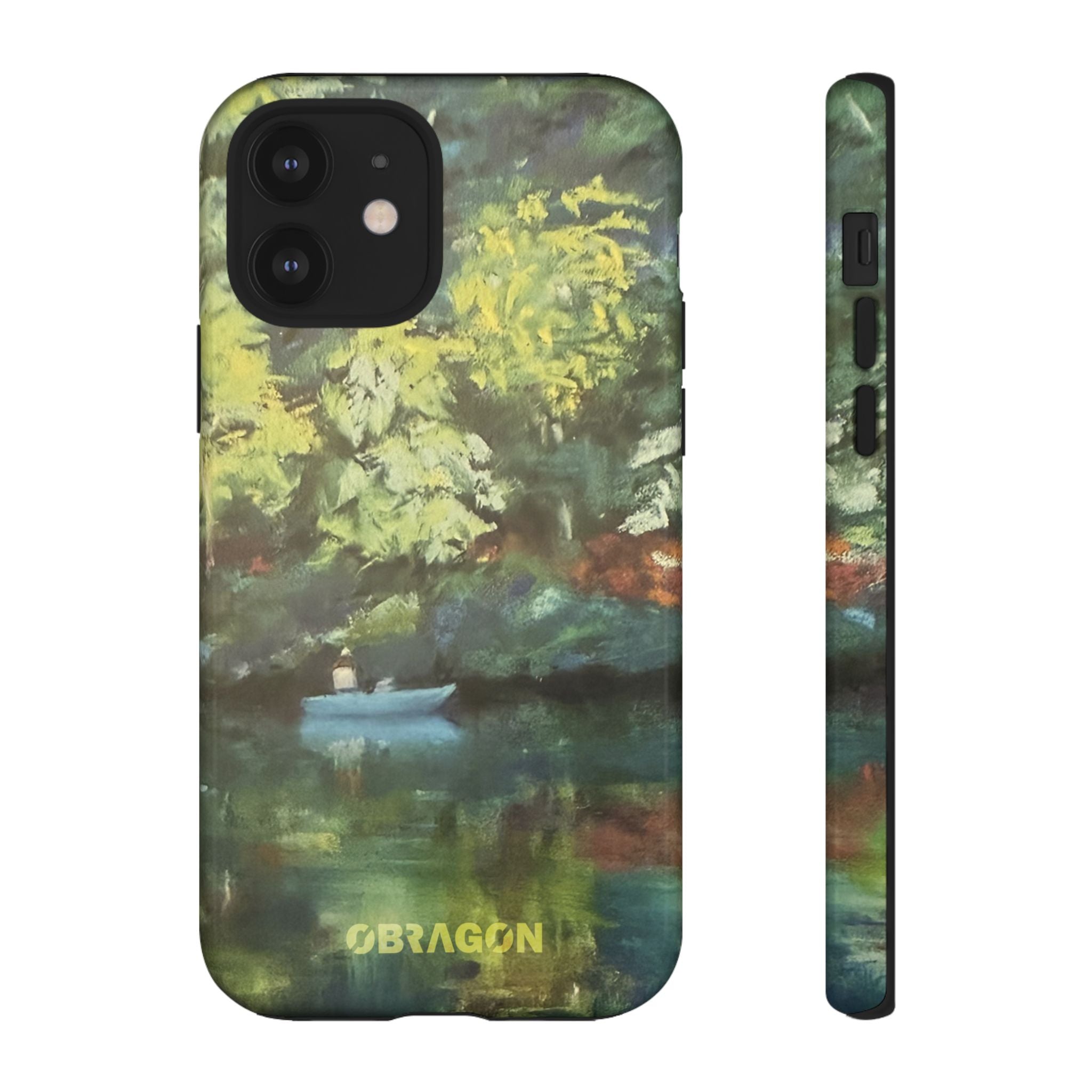 Serenity captures a quiet boat resting on a still pond, surrounded by lush green vegetation rendered in gentle watercolor detail. The scene feels calm and grounded, offering a moment of peaceful escape you can carry with you throughout the day. This design is part of the Nature's Palette collection, where each piece highlights the quiet beauty and restorative calm found in the natural world.