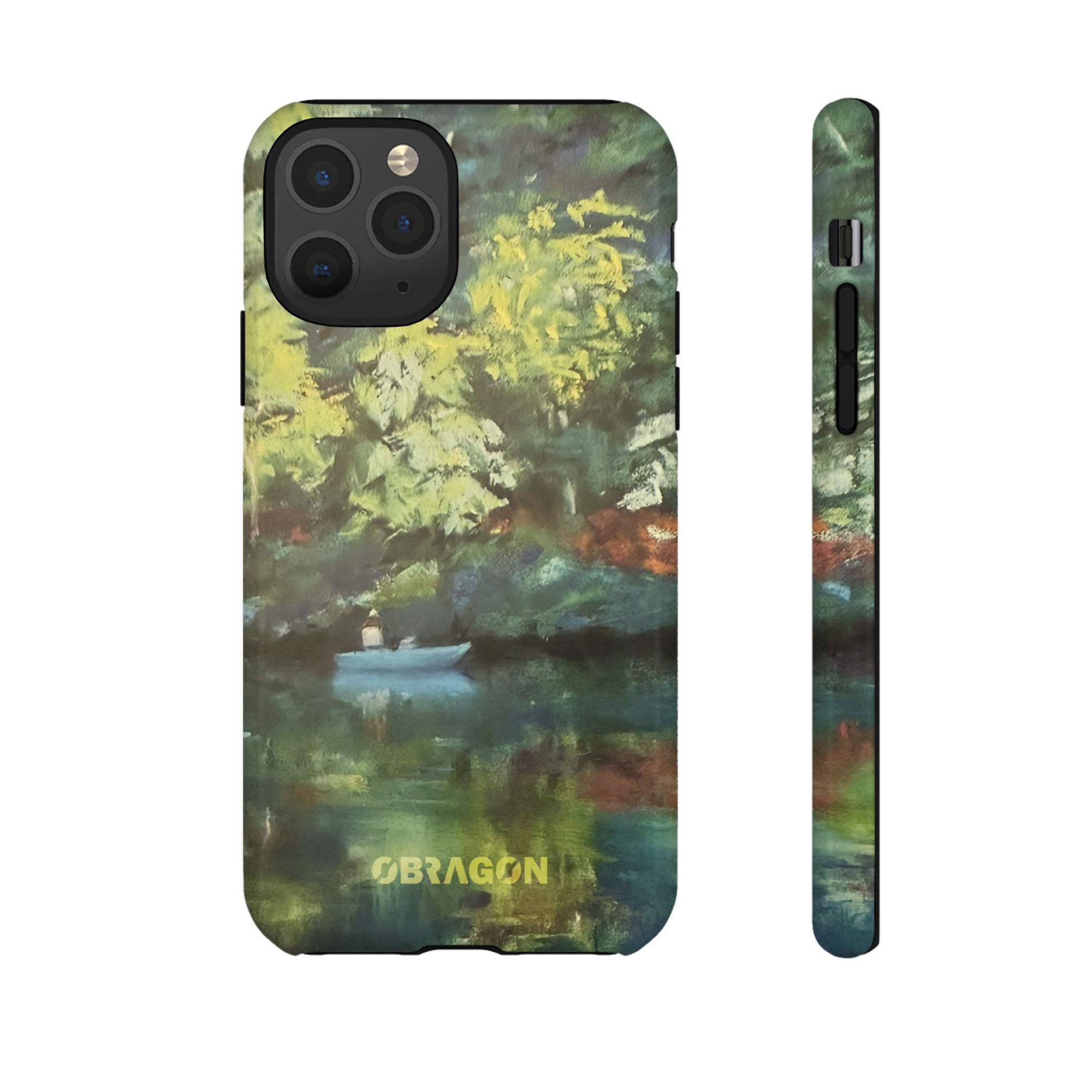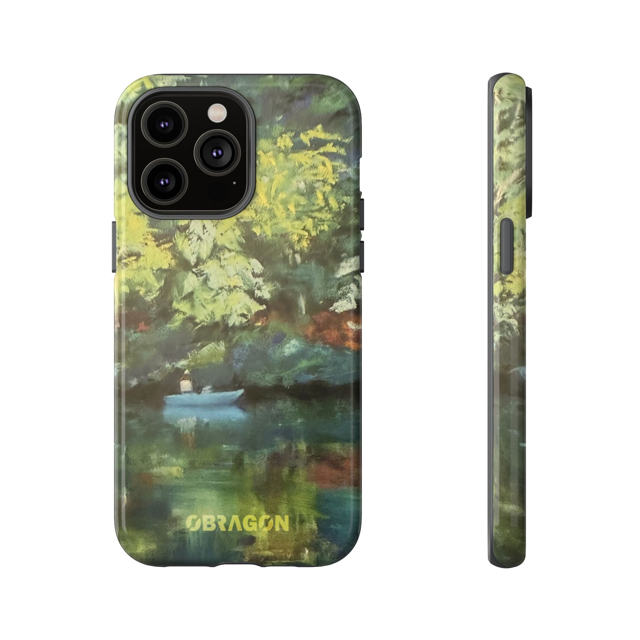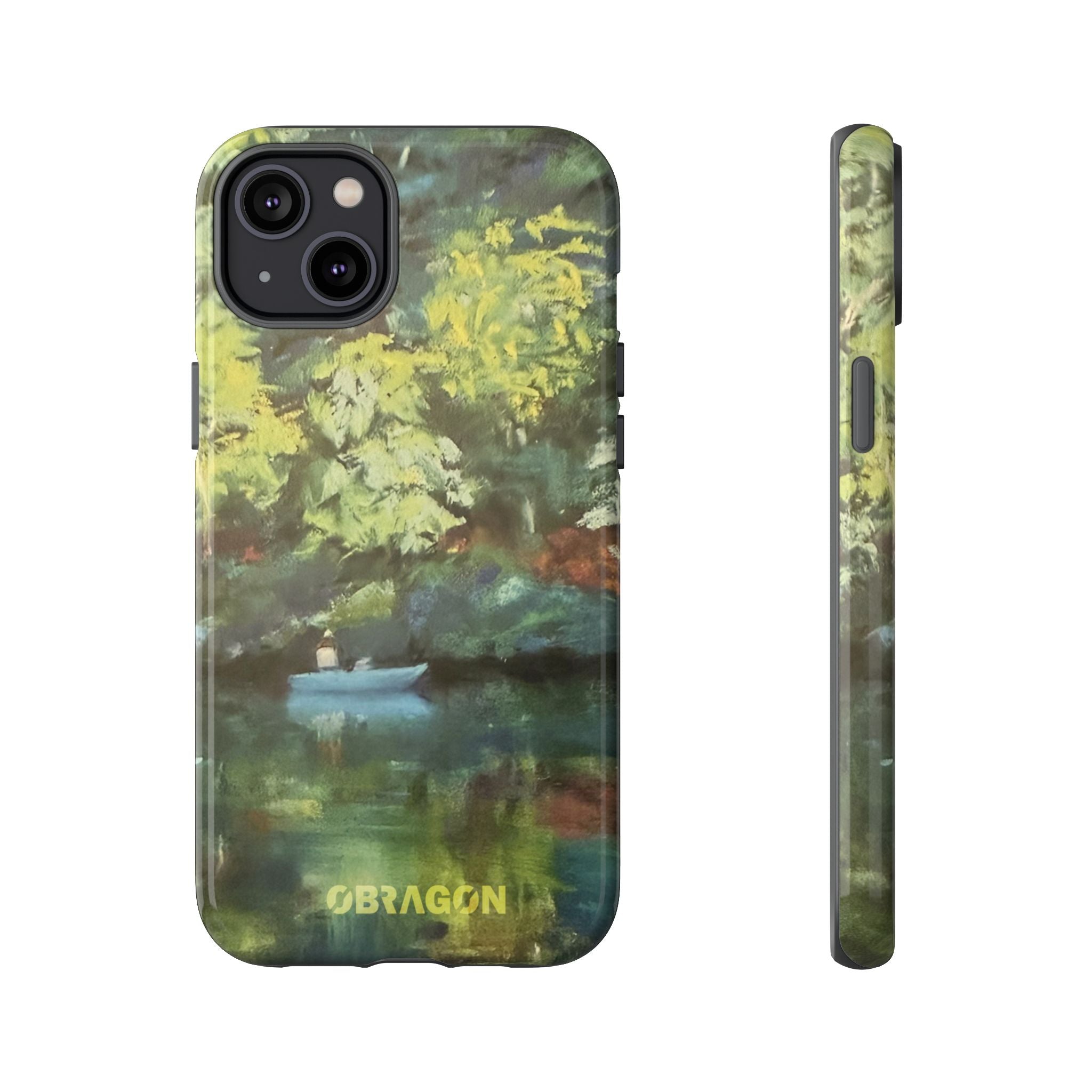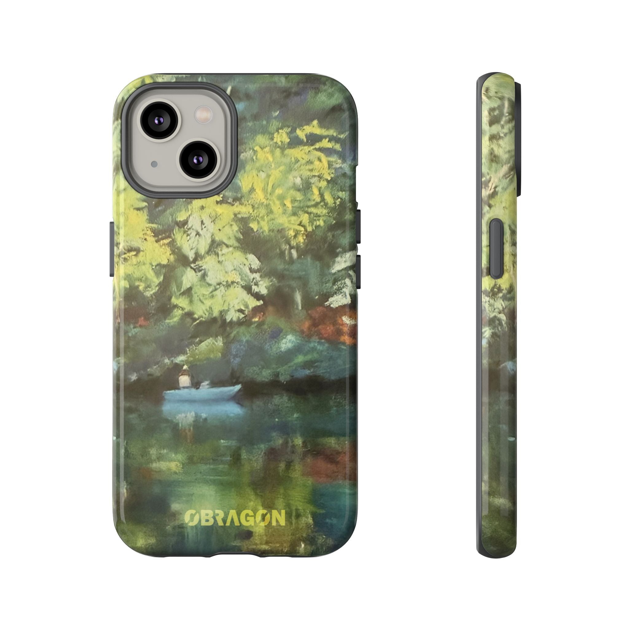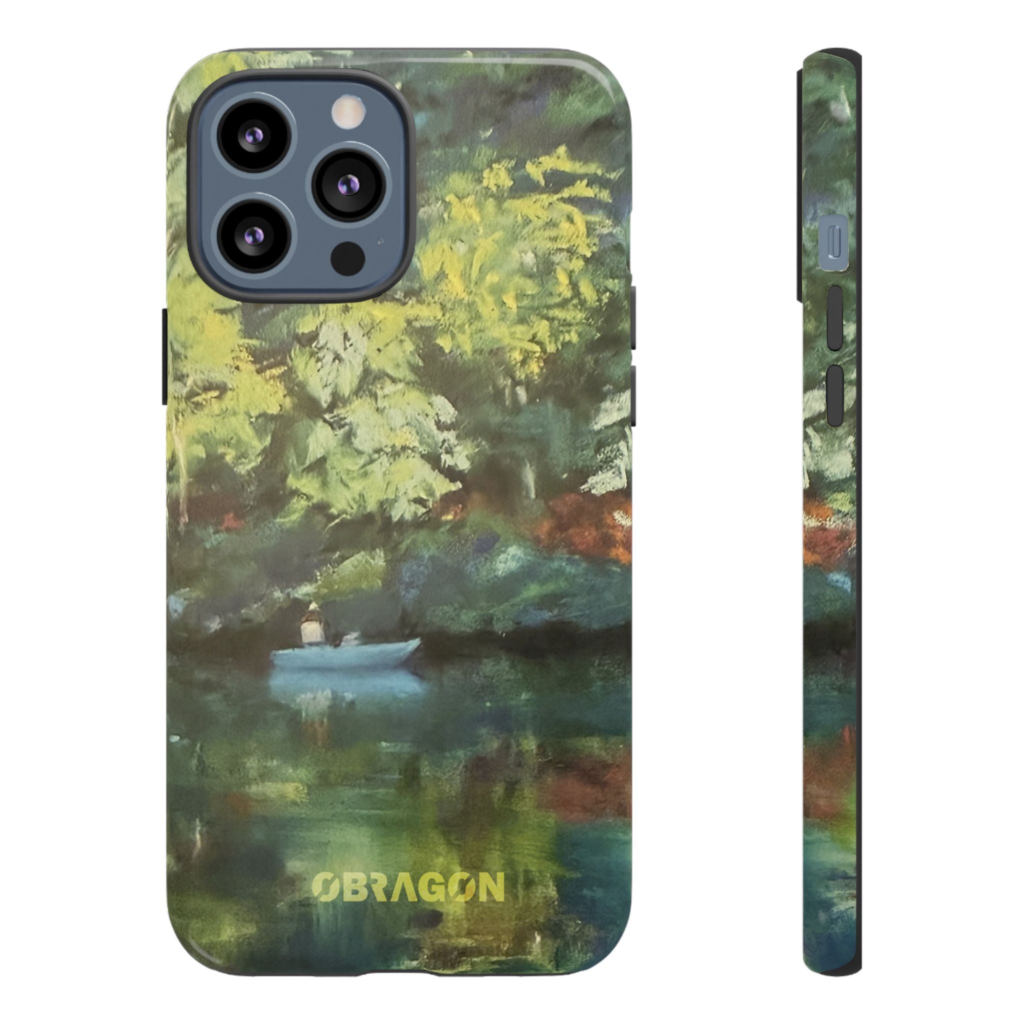 Serenity captures a quiet boat resting on a still pond, surrounded by lush green vegetation rendered in gentle watercolor detail. The scene feels calm and grounded, offering a moment of peaceful escape you can carry with you throughout the day. This design is part of the Nature's Palette collection, where each piece highlights the quiet beauty and restorative calm found in the natural world.