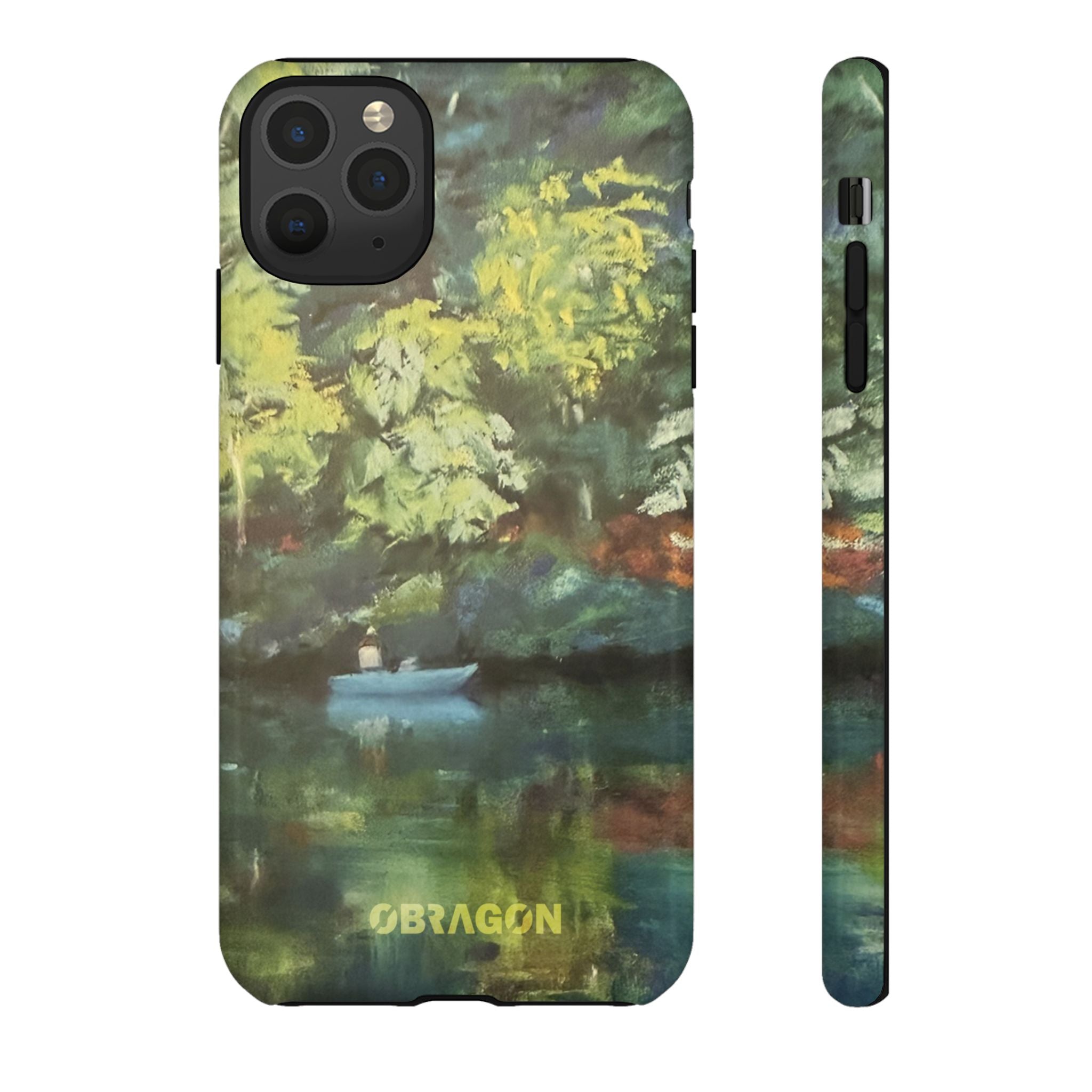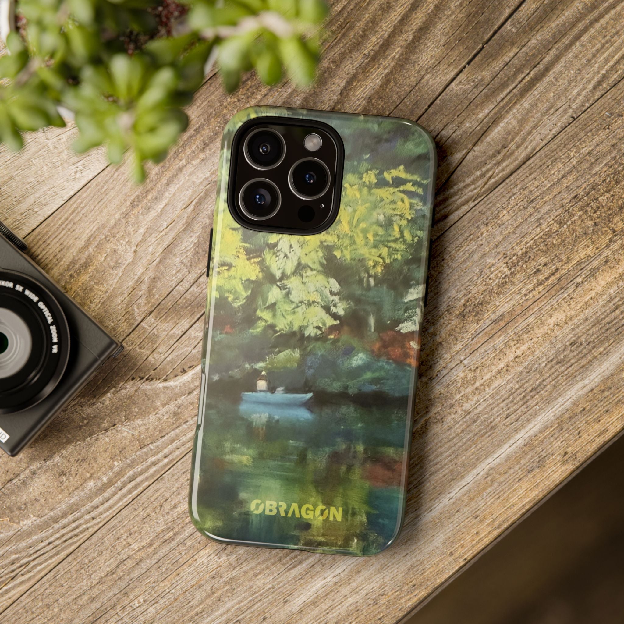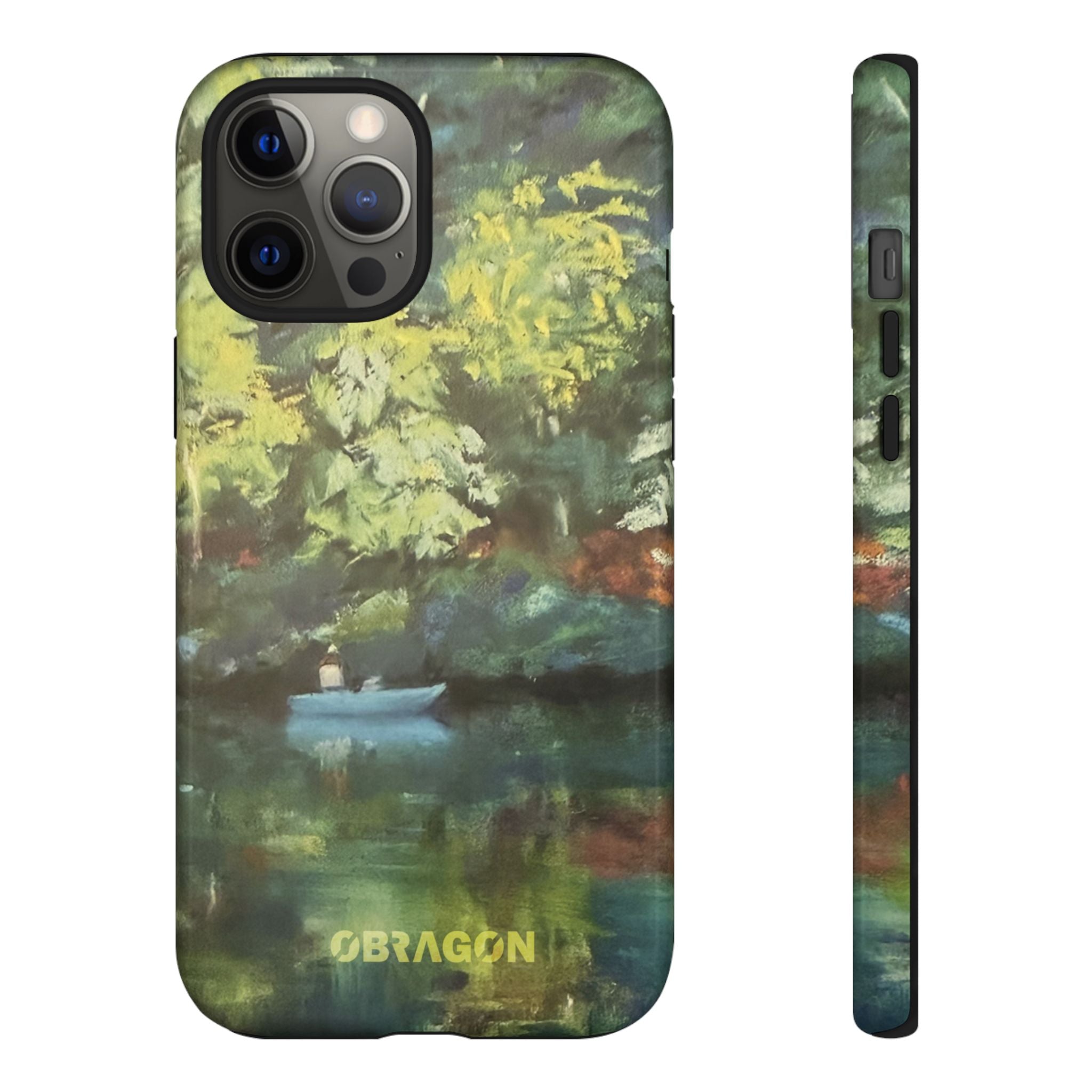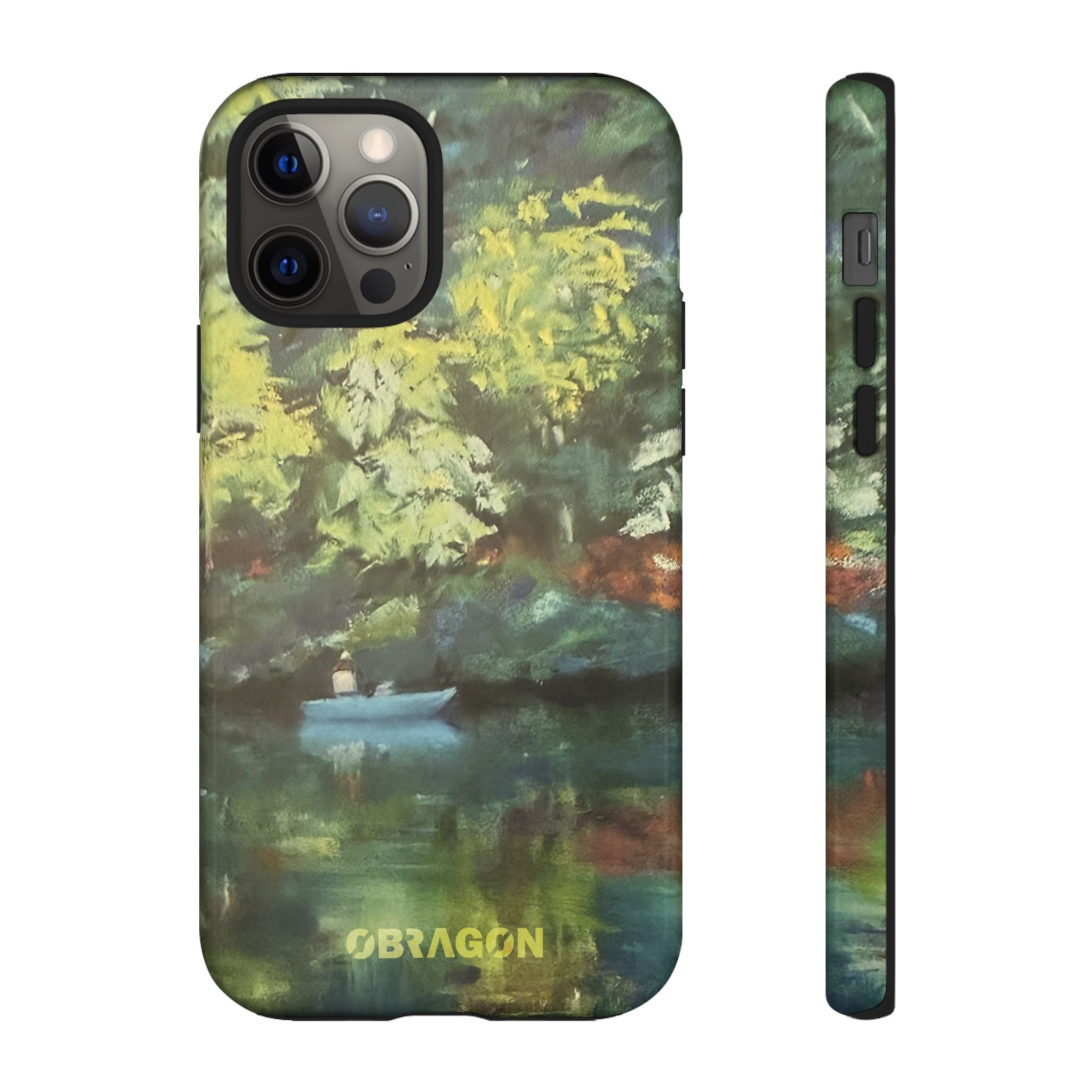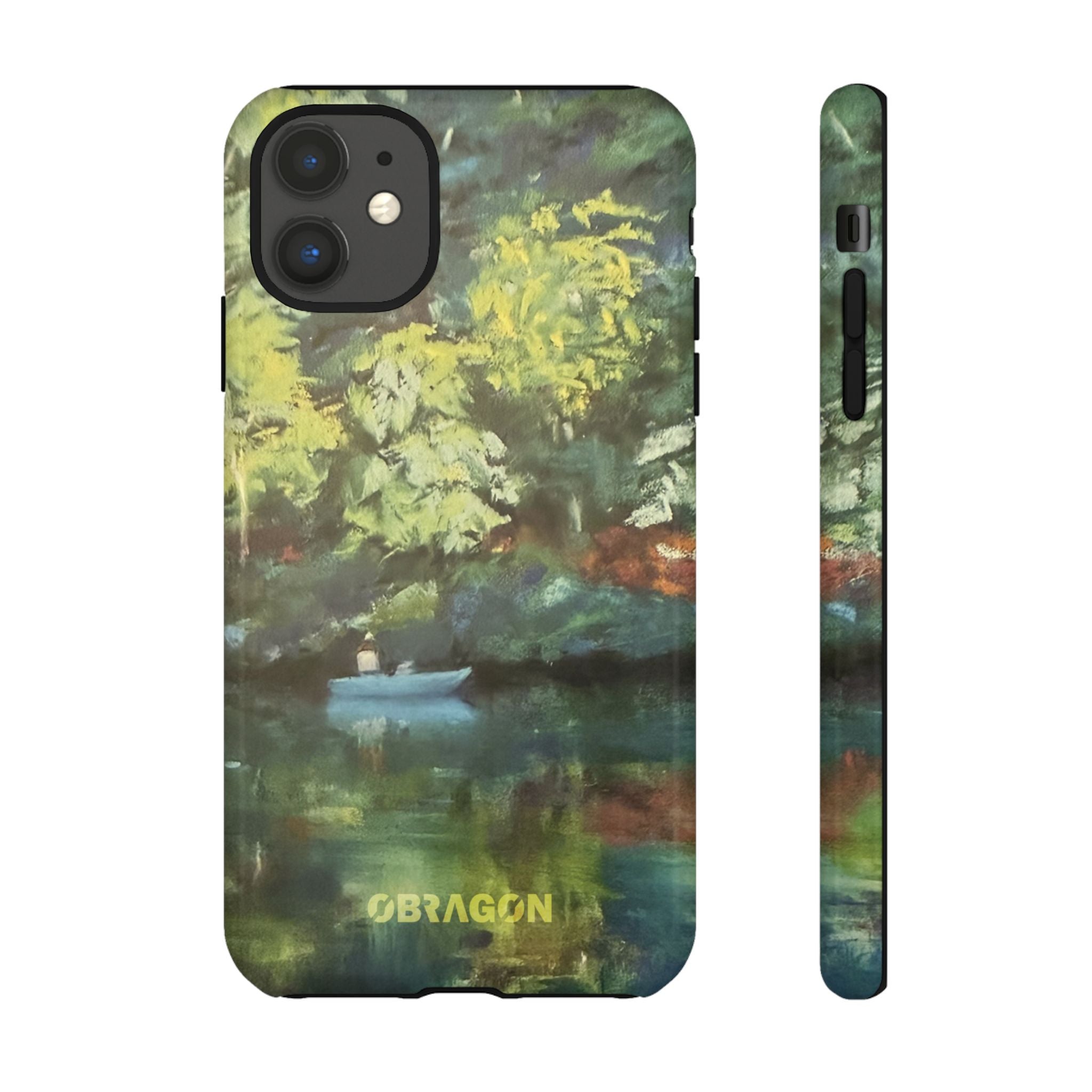 Serenity captures a quiet boat resting on a still pond, surrounded by lush green vegetation rendered in gentle watercolor detail. The scene feels calm and grounded, offering a moment of peaceful escape you can carry with you throughout the day. This design is part of the Nature's Palette collection, where each piece highlights the quiet beauty and restorative calm found in the natural world.